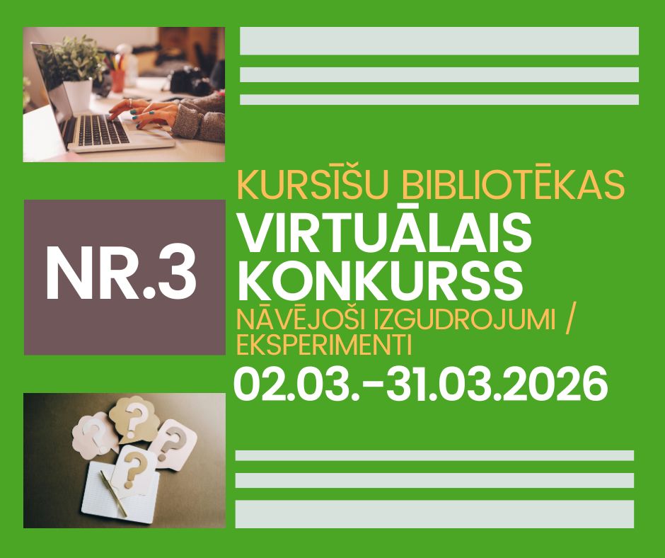 Kursīšu bibliotēkas VIRTUĀLAIS KONKURSS 2026 – NR.3 – NĀVĒJOŠI IZGUDROJUMI / EKSPERIMENTI
