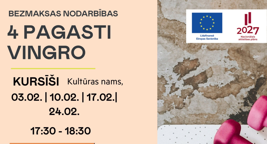 03.02., 10.02., 17.02. un 24.02.2026. no plkst. 17.30 līdz plkst. 18.30