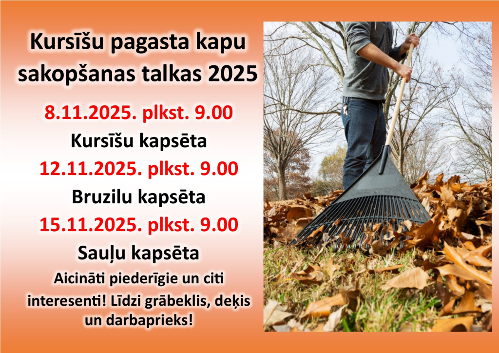 Aicināti piederīgie un citi interesenti! Līdzi grābeklis, deķis un darbaprieks!